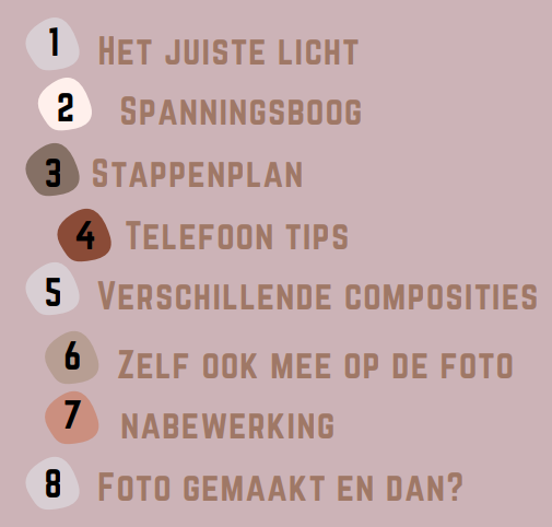 - Stappenplan. Wat ga ik doen om die perfecte foto te kunnen maken?