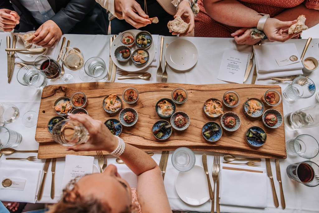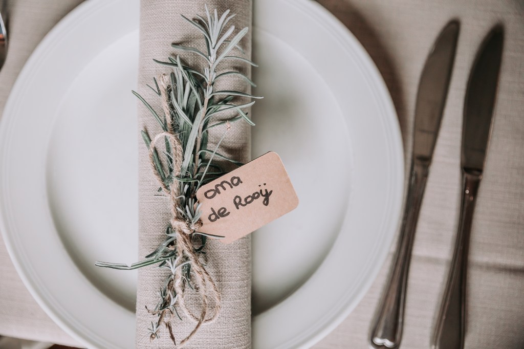 ‘Heerlijk samen eten met alle mensen die je lief zijn. Lekker bourgondisch genieten en tussendoor genieten van een speech van je vader. Het diner is een fijn moment om terug te kijken op nu al een mooie dag. En nog uit te kijken naar een knallend feest. Liefde gaat toch een beetje door de maag.’ – Sanne